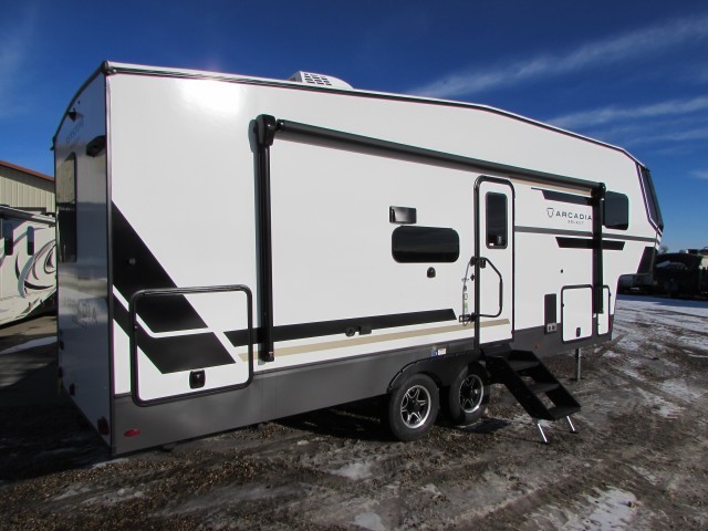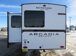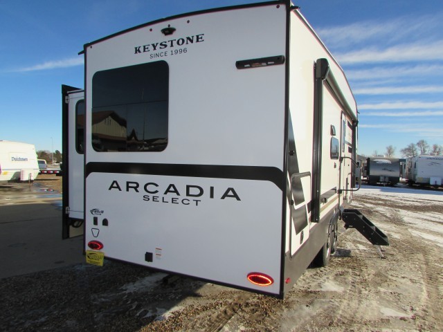 2026 Keystone Arcadia Select 24RE The 2026 Keystone Arcadia Select 24RE is a versatile and well-designed travel trailer that offers a perfect blend of comfort, functionality, and modern amenities. Ideal for families and adventurers alike, this model is built to enhance your camping experience with spacious living areas, high-quality construction, and thoughtful features. • The Arcadia Select 24RE features an open floor plan that maximizes space and comfort. With a generous living area, you’ll find a cozy sofa and a dinette that can easily convert into additional sleeping space, accommodating up to four people comfortably. • The well-equipped kitchen includes a large refrigerator, a three-burner cooktop, and a microwave for all your cooking needs. Ample counter space and storage cabinets make meal preparation a breeze, while the stylish backsplash adds a modern touch. • The bathroom features a spacious shower, a porcelain toilet, and a sink with a medicine cabinet, providing all the essentials for your convenience. The layout ensures privacy and functionality, making it easy to freshen up after a day of outdoor activities. • The master bedroom includes a comfortable queen-sized bed with storage underneath, ensuring a restful night’s sleep. Nightstands and overhead cabinets provide additional storage for personal items. • Enjoy your favorite movies and shows with the built-in entertainment system, which includes a flat-screen TV and Bluetooth connectivity. The sound system enhances your viewing experience, making it perfect for family movie nights or relaxing after a day of adventure. • The exterior of the Arcadia Select 24RE is designed for durability and convenience. It features a power awning with LED lighting, providing a comfortable outdoor space for relaxation and entertainment. The trailer is equipped with sturdy stabilizer jacks and a durable frame for enhanced stability while parked. • Stay comfortable in any weather with the efficient heating and cooling systems. The Arcadia Select is designed for year-round camping, ensuring you can enjoy your adventures regardless of the season. • Ample storage options are available throughout the trailer, including exterior compartments for gear and equipment. The pass-through storage area allows for easy access to larger items, making it perfect for extended trips. • The 2026 Keystone Arcadia Select 24RE is equipped with essential safety features, including smoke detectors, a fire extinguisher, and a secure entry door with a deadbolt lock for peace of mind while you’re on the road or parked at your campsite. Why Choose the 2026 Keystone Arcadia Select 24RE? The 2026 Keystone Arcadia Select 24RE is perfect for those seeking a reliable and comfortable fifth wheel that doesn’t compromise on style or functionality. With its spacious interior, modern amenities, and thoughtful design, it’s ready to take you on your next adventure. Visit Us Today! Explore the 2026 Keystone Arcadia Select 24RE at Chase Auto & RV. Our knowledgeable team is here to answer any questions and help you find the camper for your needs. Schedule a tour or visit us today!
