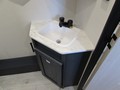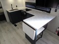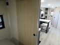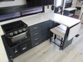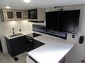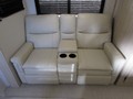 Open floorplan, washer/dryer prep, outside refrigerator, queen front bed, one slide, 2 air conditioners, loveseat recliner, big refrigerator.