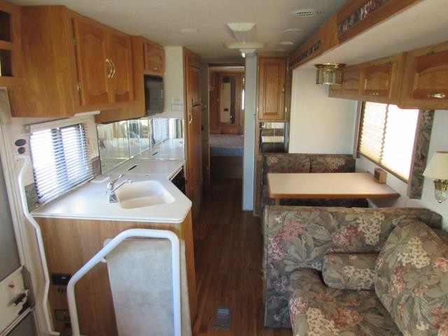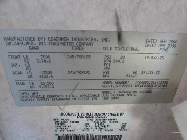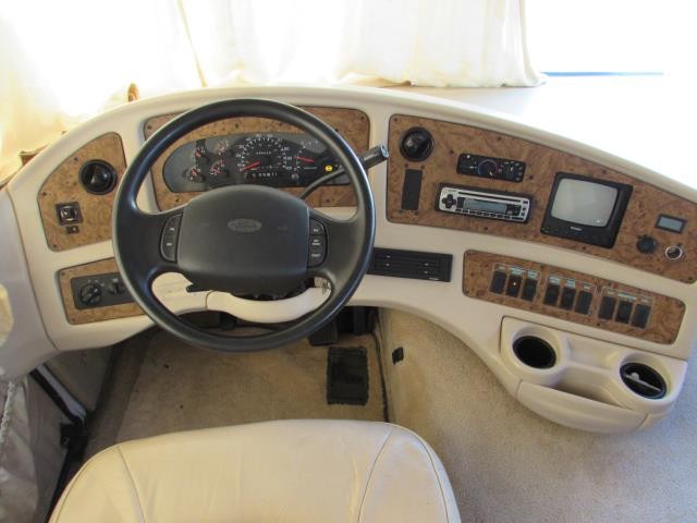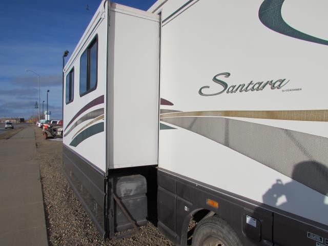 This is a local consignment we are selling for a family here in town. It was previously sold by us. It is on a Ford Chassis. It has a 6.8L Ford V10 gas engine. It is built by Coachmen. It has one slide. 7,000 watt generator. 2 air conditioners. 50 amp service. Hydraulic leveling system. Queen bed. Hide-a-bed sofa. In nice condition for a 20 year old RV. This is the Santara 3400MBS model. For more specs, read the printed labels in the pictures.